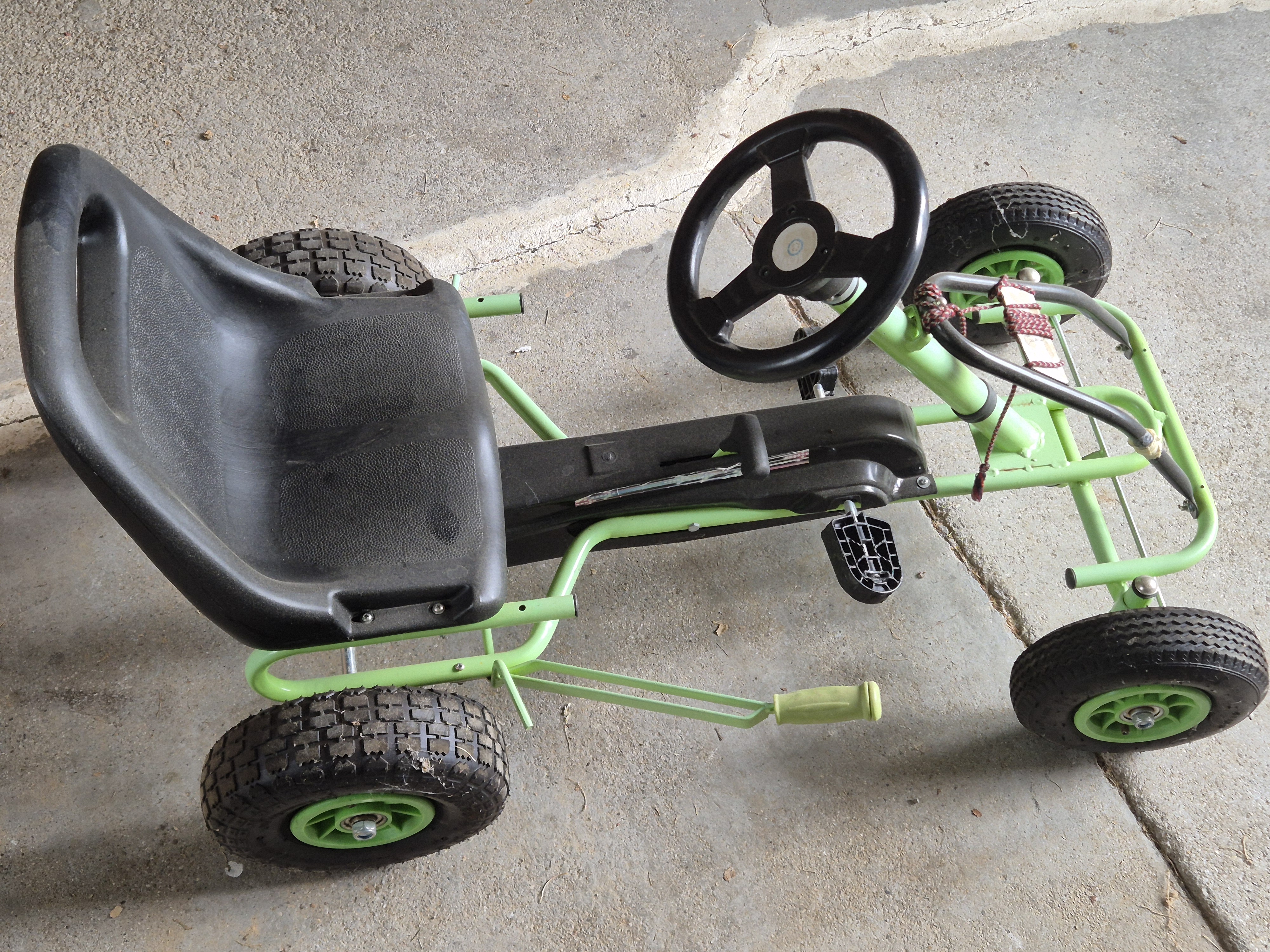 Gokart zum treten für Kinder mit Gummibereifung und Handbremse.