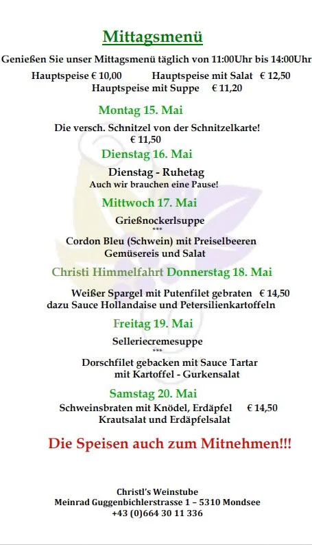 Die Speisekarte findet ihr unter https://www.christlsweinstube.com/unser-menü