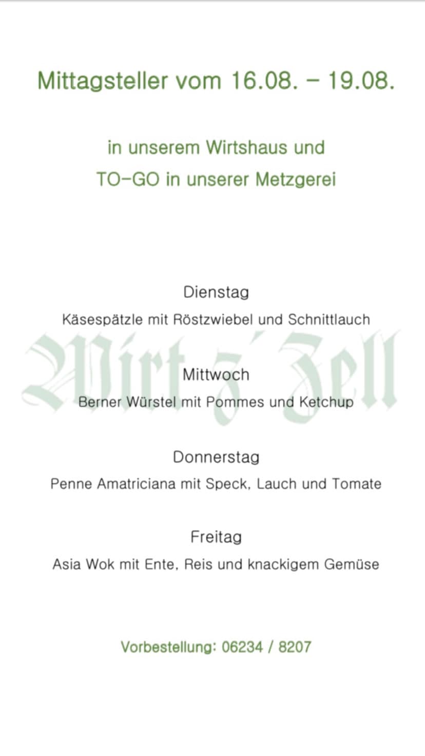 unsere Mittagskarte & Wochenempfehlungvon 16. - 18. August 2022