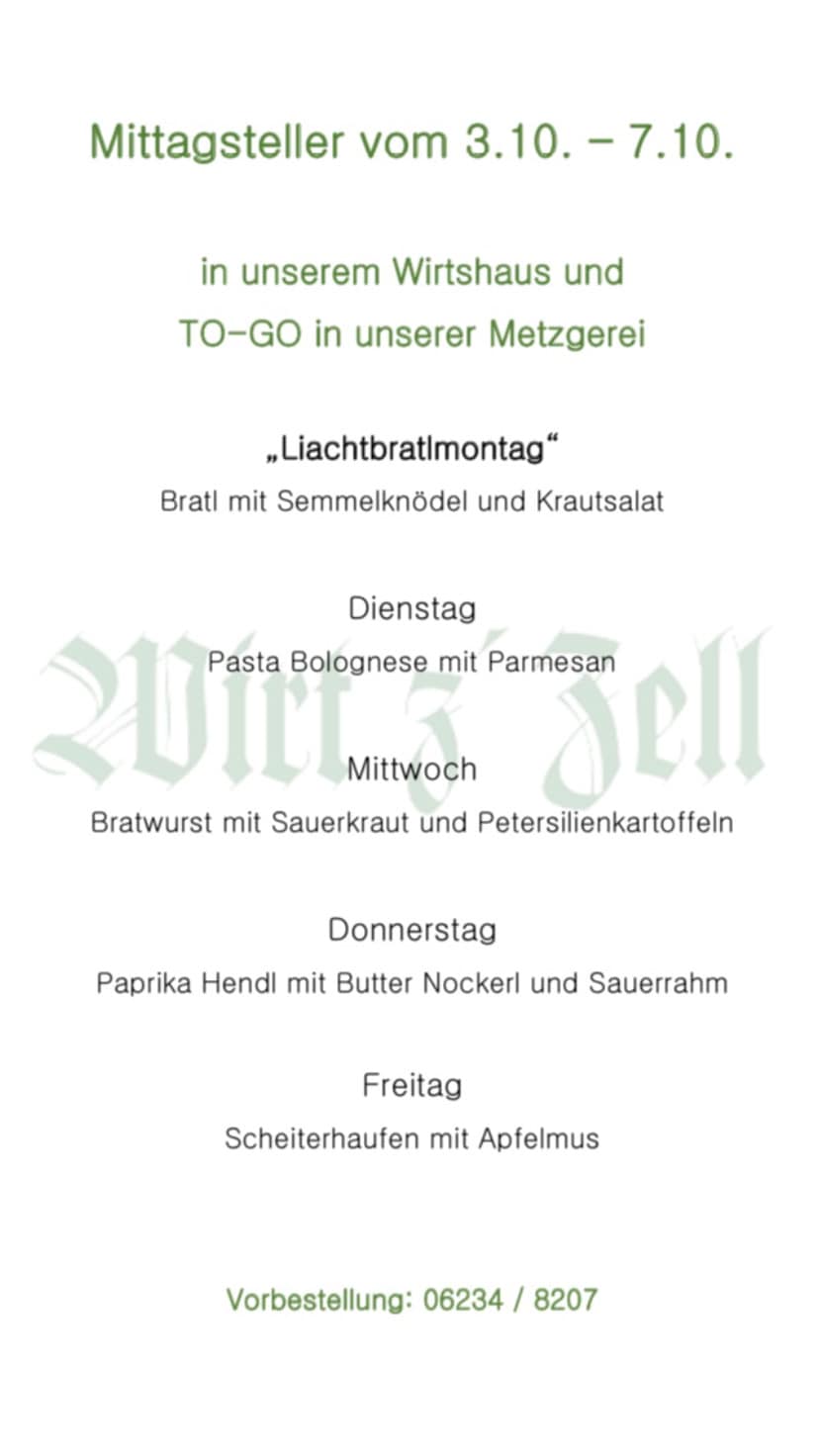 unsere Mittagskarte & Wochenempfehlung von 4. - 7. Oktober 2022