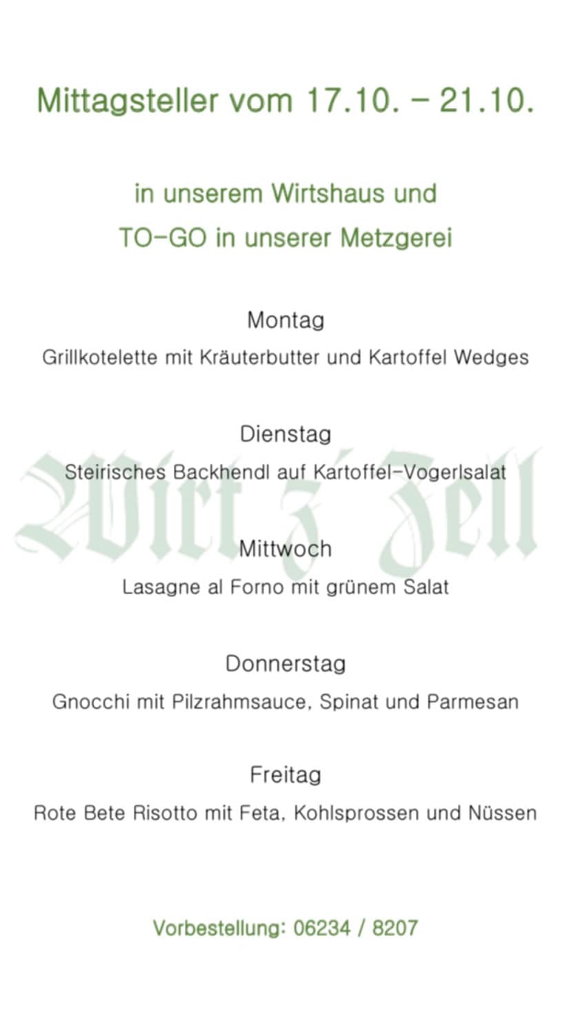 unsere Mittagskarte & Wochenempfehlung von 18. - 21. Oktober 2022