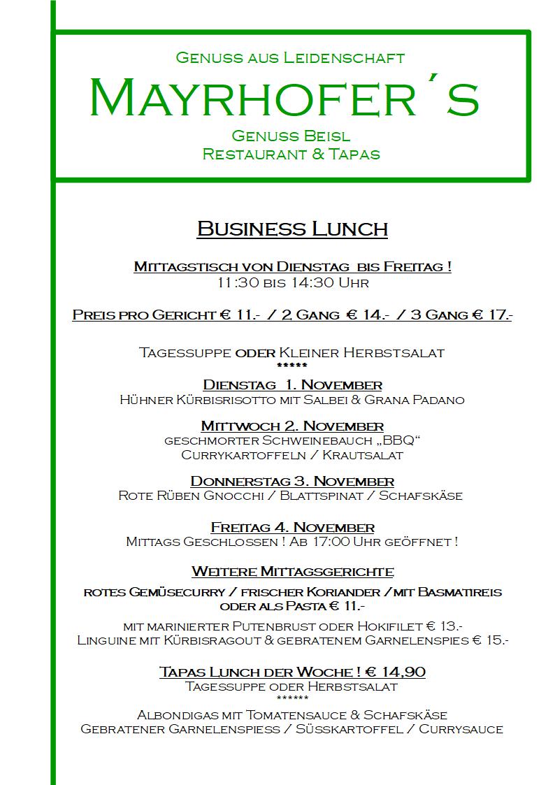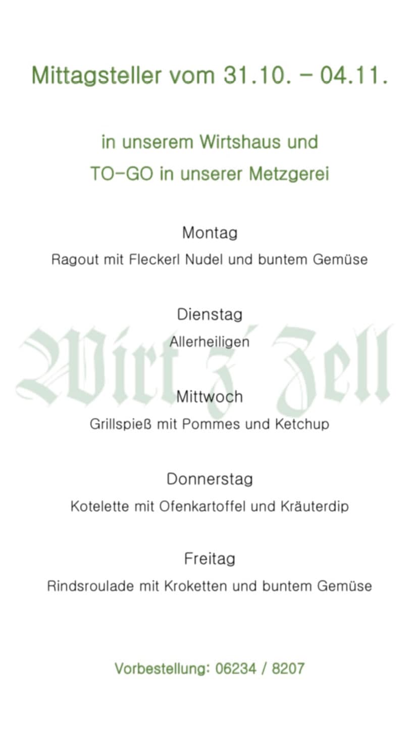 unsere Mittagskarte & Wochenempfehlung von 1. - 3. November 2022