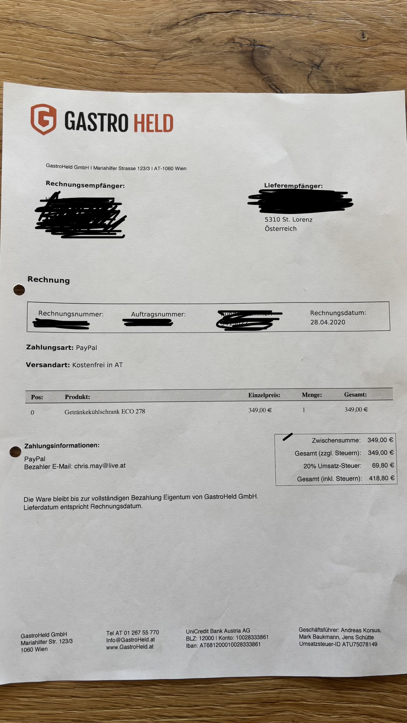 Artikel, wenn möglich, persönlich entgegennehmen und bezahlen.